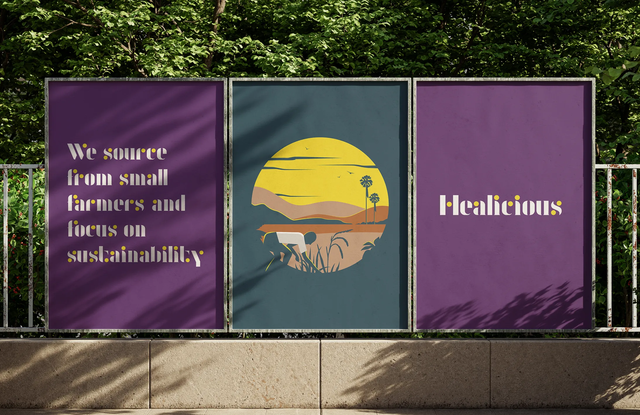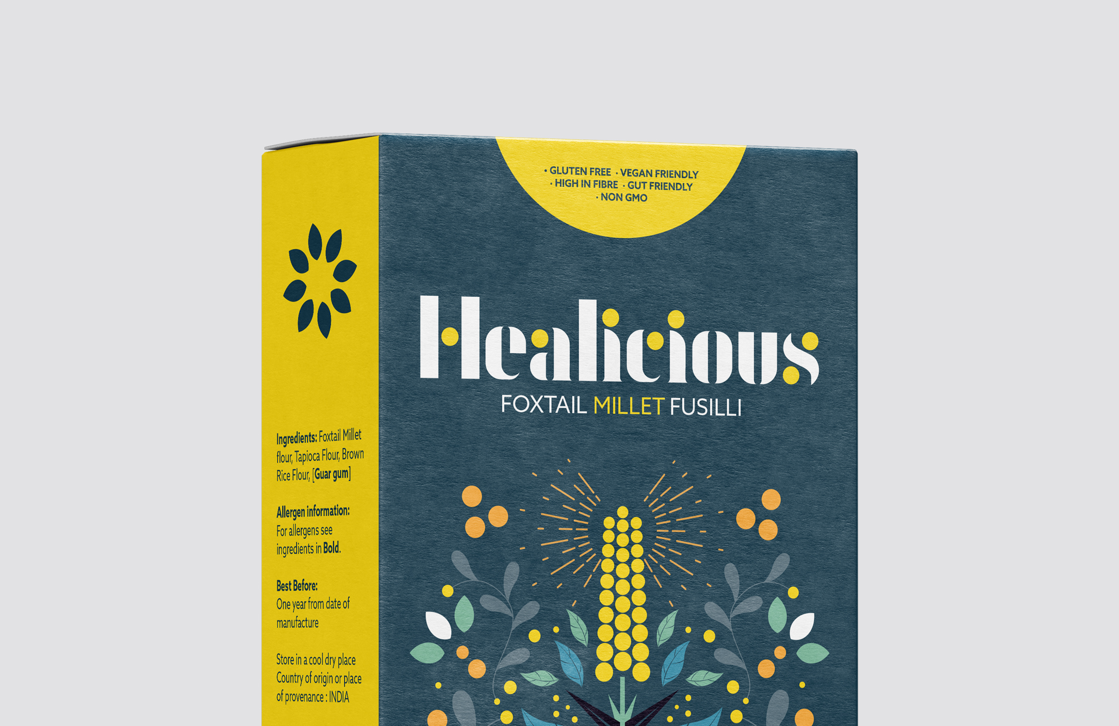 Our brand identity for Healicious celebrates their passion for the superfood and also the goodness found inside this simple grain. The brand mark features the millet at the heart of it, coupled with a custom font crafted to accommodate the ‘millet dot’ as a typographic identity and the main hero. We paired the typography with a custom illustration style that feels natural and healthy whilst also being evocative of its Indian heritage.