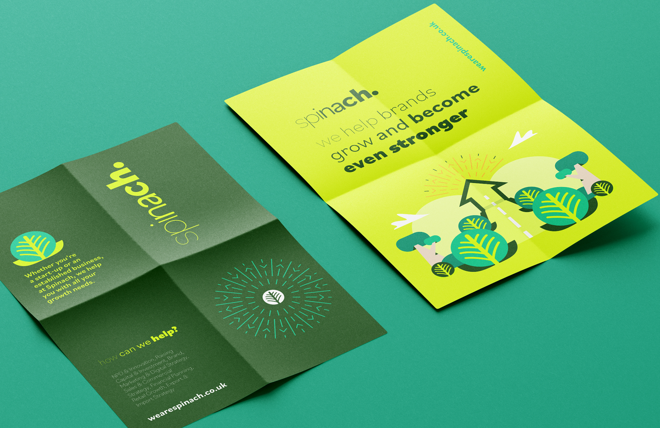 We created a playful brand for them that visualised the progression and strength behind Spinach as an agency and illustrated how their involvement in any project or individual allowed for visual growth.